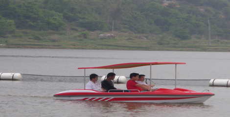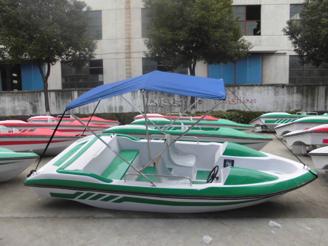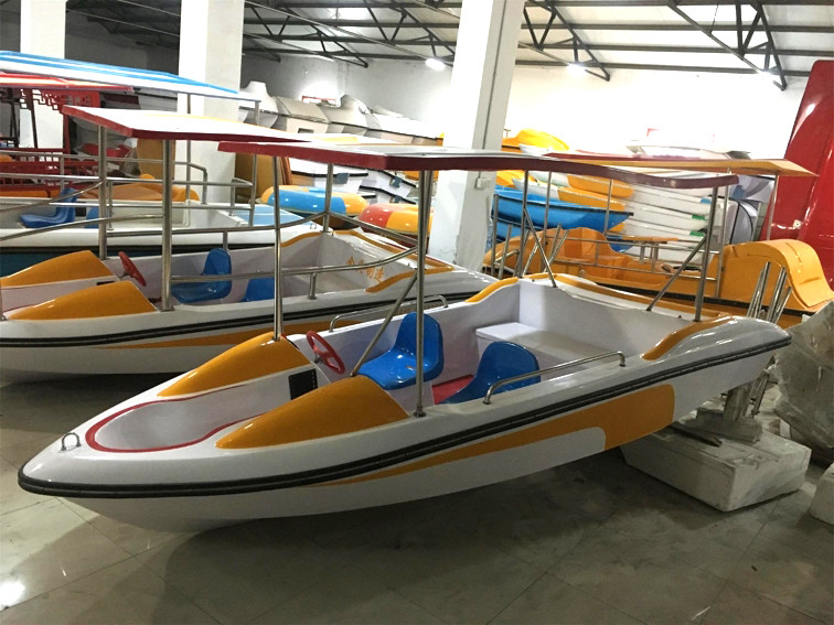 | 特點(diǎn):船體材質(zhì)玻璃鋼,具有強(qiáng)度高、重量輕、耐腐蝕、不怕日曬雨淋、色彩艷麗、外型美觀的特點(diǎn)。電瓶驅(qū)動(dòng),沒(méi)有污染,可由游客自行駕駛??晒┕珗@水域、湖泊、水庫(kù)、水上游樂(lè)。船體寬敞,船頭凹甲板,游客上下方便。 | |||||